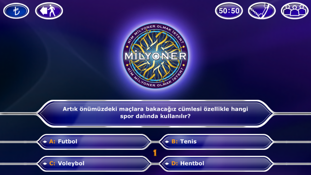 Gerçek bir kim milyoner olmak ister oyunu oynamak istiyorsanız sitemiz doğru bir seçim. Kelime oyunu kelime bulucu adam asmaca ve Trivia oyunlarının en güçlü rakibi. Kim Milyoner Olmak İster Oyunu.
